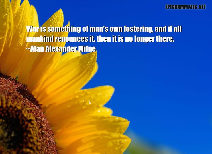 Alan Alexander Milne Quotes Alan Alexander Milne War is something of man's own fostering, and if all mankind renounces it, then it is no longer there. Longer Man Mankind Mankind Renounces Own Something Then War