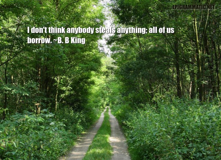 B. B King Quotes B. B King I don't think anybody steals anything; all of us borrow. Anybody Anybody Steals Anything Borrow Think Us