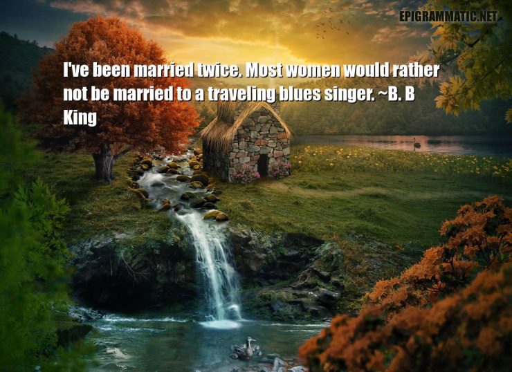 B. B King Quotes B. B King I've been married twice. Most women would rather not be married to a traveling blues singer. Blues Blues Singer Rather Singer Twice Women