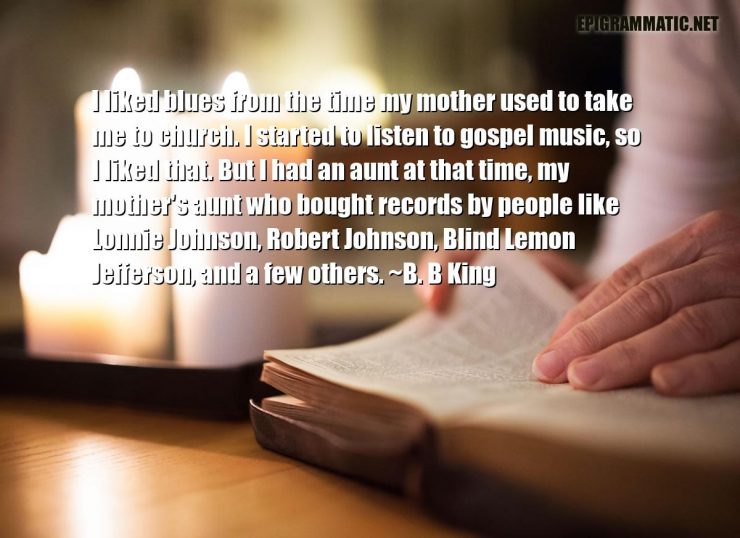 I liked blues from the time my mother used to take me to church. I started to listen to gospel music, so I liked that. But I had an aunt at that time, my mother's aunt who bought records by people like Lonnie Johnson, Robert Johnson, Blind Lemon Jefferson, and a few others.