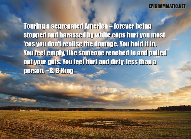 Touring a segregated America – forever being stopped and harassed by white cops hurt you most 'cos you don't realise the damage. You hold it in. You feel empty, like someone reached in and pulled out your guts. You feel hurt and dirty, less than a person.
