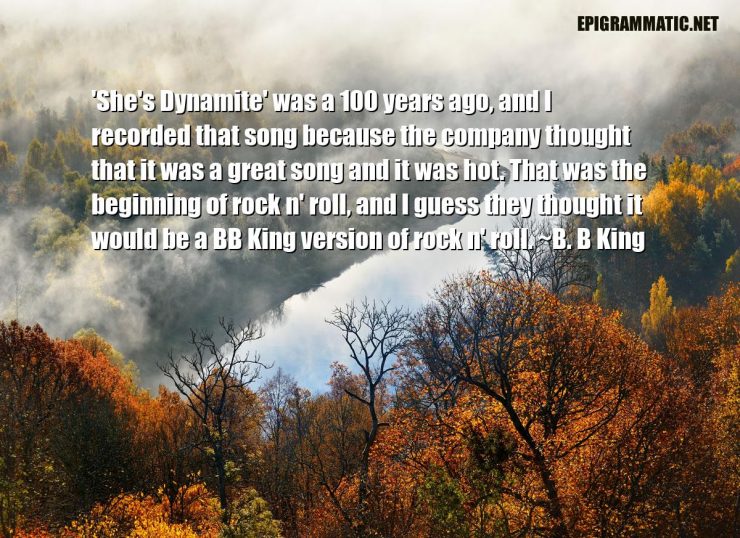 'She's Dynamite' was a 100 years ago, and I recorded that song because the company thought that it was a great song and it was hot. That was the beginning of rock n' roll, and I guess they thought it would be a BB King version of rock n' roll.