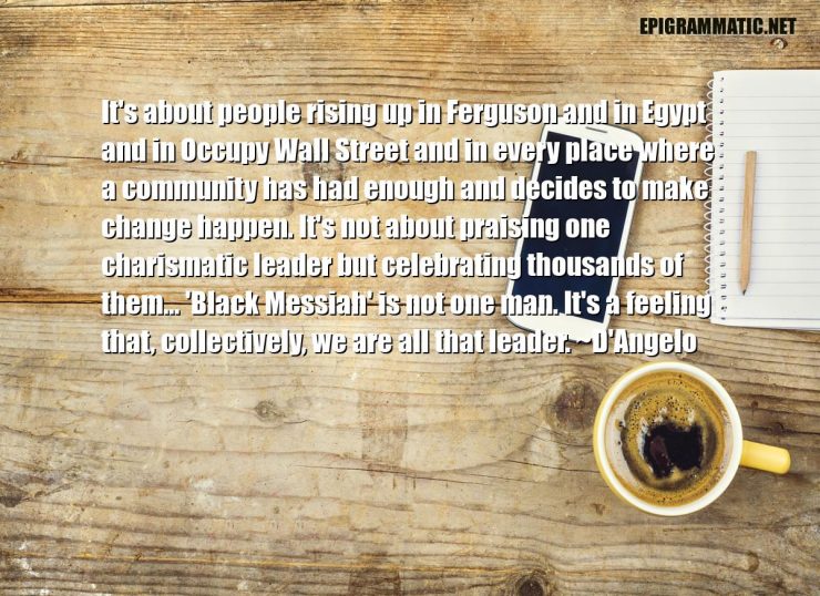 It's about people rising up in Ferguson and in Egypt and in Occupy Wall Street and in every place where a community has had enough and decides to make change happen. It's not about praising one charismatic leader but celebrating thousands of them… 'Black Messiah' is not one man. It's a feeling that, collectively, we are all that leader.