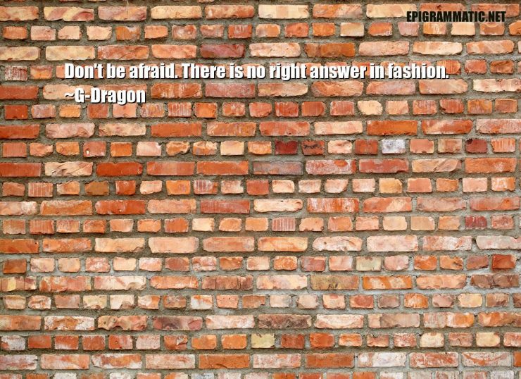 G-Dragon Quotes G-Dragon Don't be afraid. There is no right answer in fashion. Afraid Answer Fashion Right Right Answer