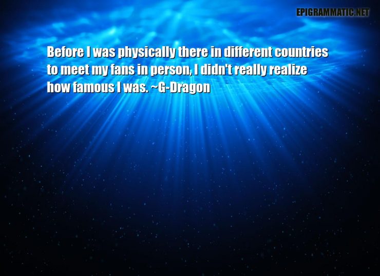 G-Dragon Quotes G-Dragon Before I was physically there in different countries to meet my fans in person, I didn't really realize how famous I was. Countries Different Famous Fans Meet Person Realize