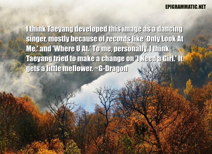 I think Taeyang developed this image as a dancing singer, mostly because of records like 'Only Look At Me,' and 'Where U At.' To me, personally, I think Taeyang tried to make a change on 'I Need a Girl.' It gets a little mellower.