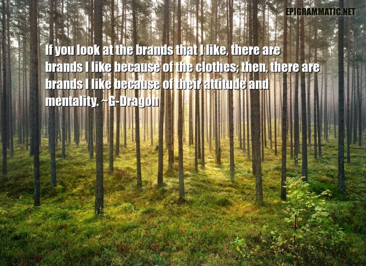 G-Dragon Quotes G-Dragon If you look at the brands that I like, there are brands I like because of the clothes; then, there are brands I like because of their attitude and mentality. Attitude Because Brands Clothes Look You