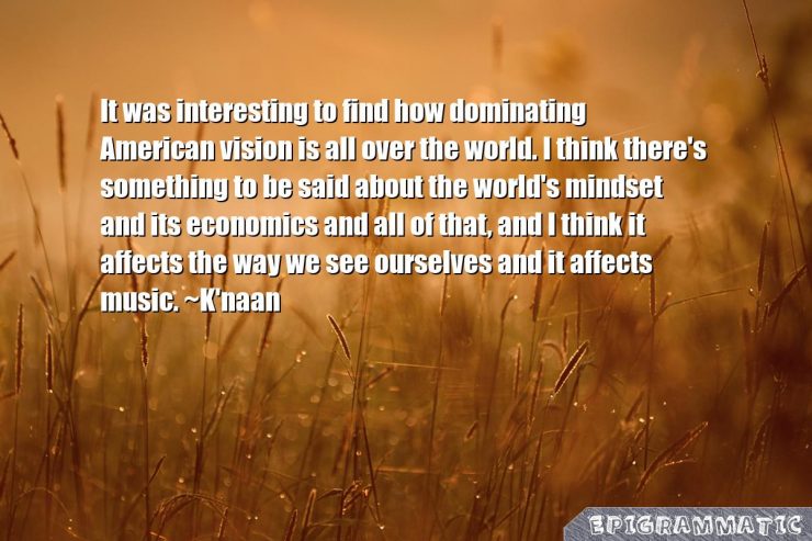 It was interesting to find how dominating American vision is all over the world. I think there's something to be said about the world's mindset and its economics and all of that, and I think it affects the way we see ourselves and it affects music.