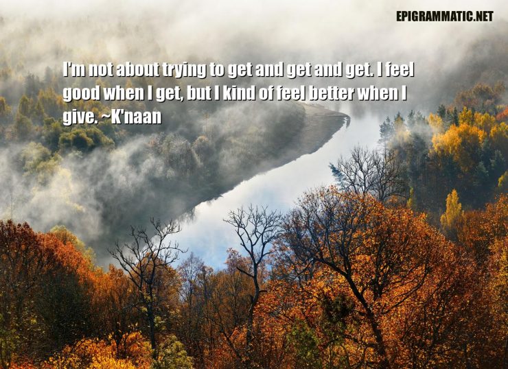 K'naan Quotes K'naan I'm not about trying to get and get and get. I feel good when I get, but I kind of feel better when I give. Better Feel Feel Good Good Trying