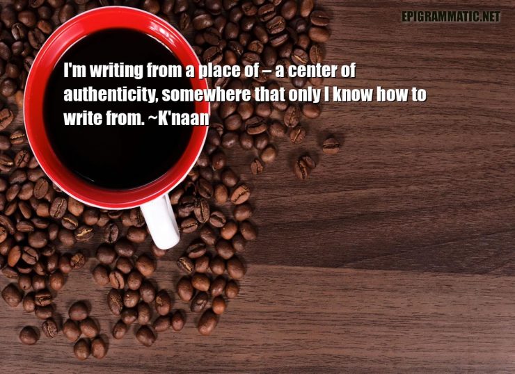 K'naan Quotes K'naan I'm writing from a place of – a center of authenticity, somewhere that only I know how to write from. Authenticity Center Know Only Place Writing