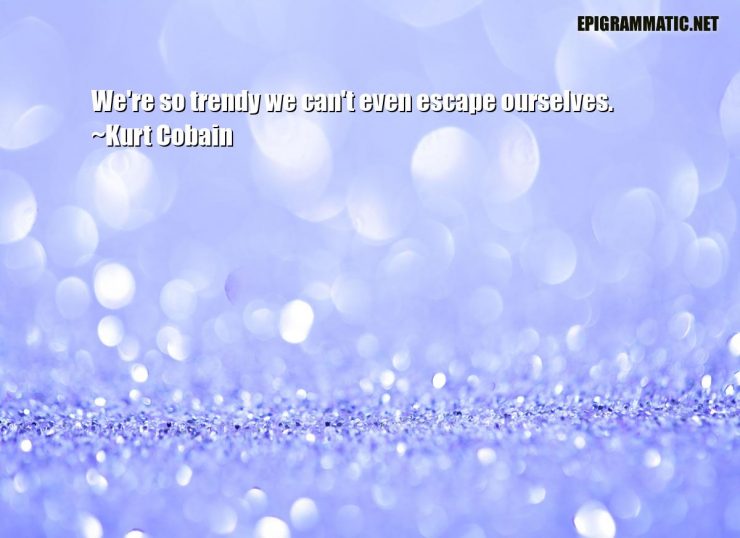 Kurt Cobain Quotes Kurt Cobain We're so trendy we can't even escape ourselves. Escape Even Ourselves Trendy