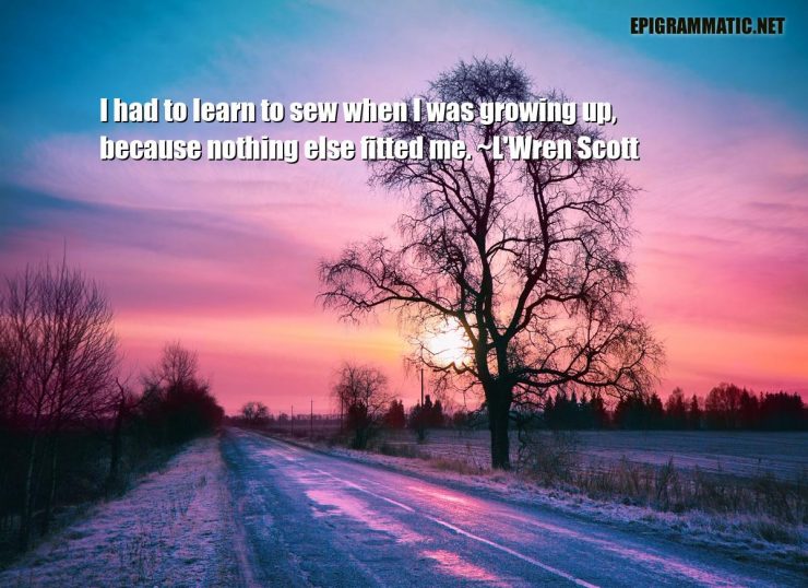 L'Wren Scott Quotes L'Wren Scott I had to learn to sew when I was growing up, because nothing else fitted me. Growing Growing Up Learn Me Nothing