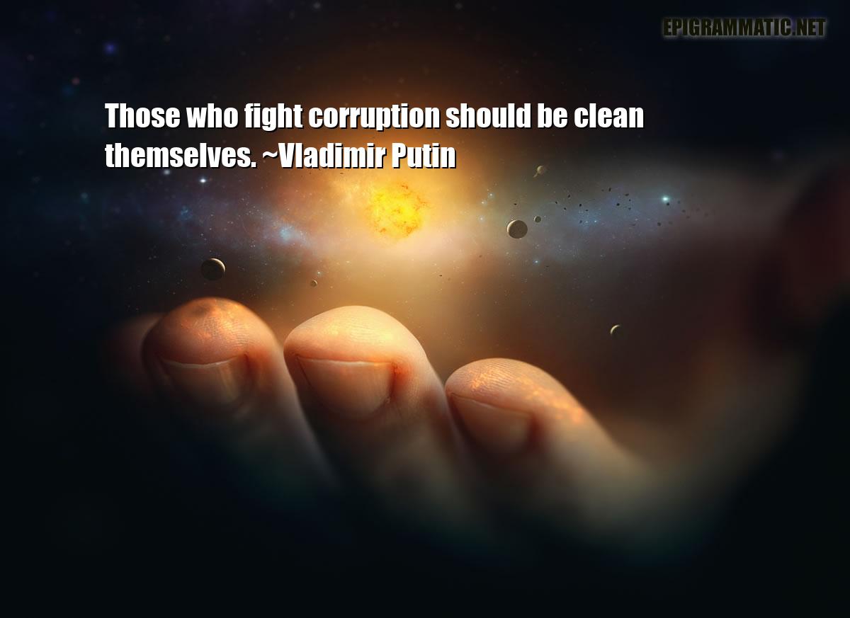 Those who fight corruption should be clean themselves. Vladimir Putin Clean • Corruption • Fight • Should • Who