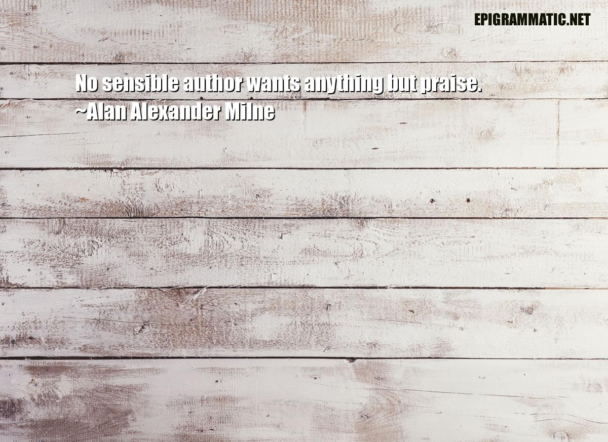 No sensible author wants anything but praise. Alan Alexander Milne Anything • Praise • Sensible • Sensible Author • Wants