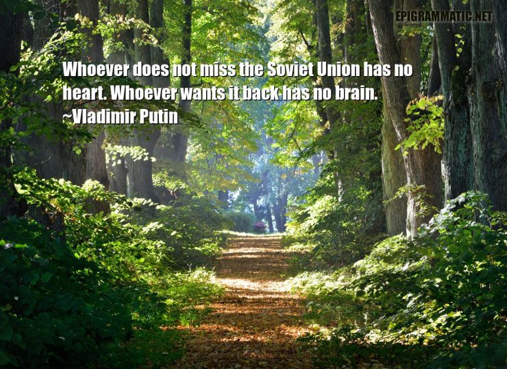 Vladimir Putin Quotes Vladimir Putin Whoever does not miss the Soviet Union has no heart. Whoever wants it back has no brain. Back Brain Heart Miss Soviet Union