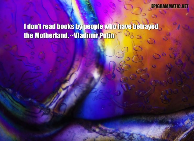 Vladimir Putin Quotes Vladimir Putin I don't read books by people who have betrayed the Motherland. Books Motherland People Read Who
