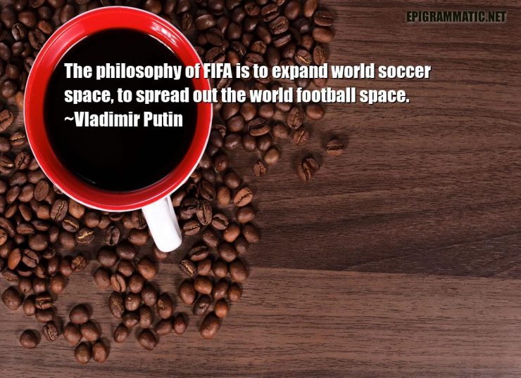 Vladimir Putin Quotes Vladimir Putin The philosophy of FIFA is to expand world soccer space, to spread out the world football space. FIFA Football Out Philosophy Soccer Space World