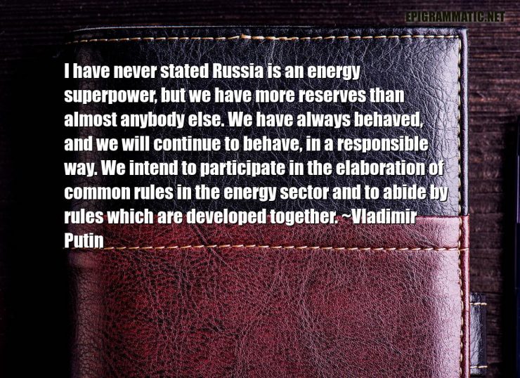 I have never stated Russia is an energy superpower, but we have more reserves than almost anybody else. We have always behaved, and we will continue to behave, in a responsible way. We intend to participate in the elaboration of common rules in the energy sector and to abide by rules which are developed together.
