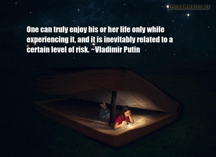 One can truly enjoy his or her life only while experiencing it, and it is inevitably related to a certain level of risk.