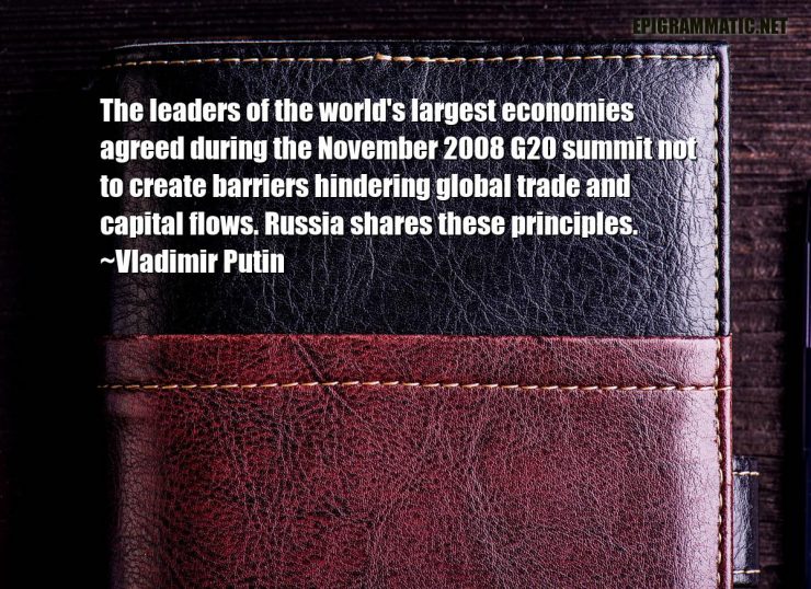 The leaders of the world's largest economies agreed during the November 2008 G20 summit not to create barriers hindering global trade and capital flows. Russia shares these principles.