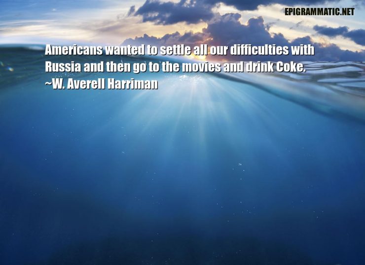 W. Averell Harriman Quotes W. Averell Harriman Americans wanted to settle all our difficulties with Russia and then go to the movies and drink Coke. Americans Difficulties Drink Go Movies Russia