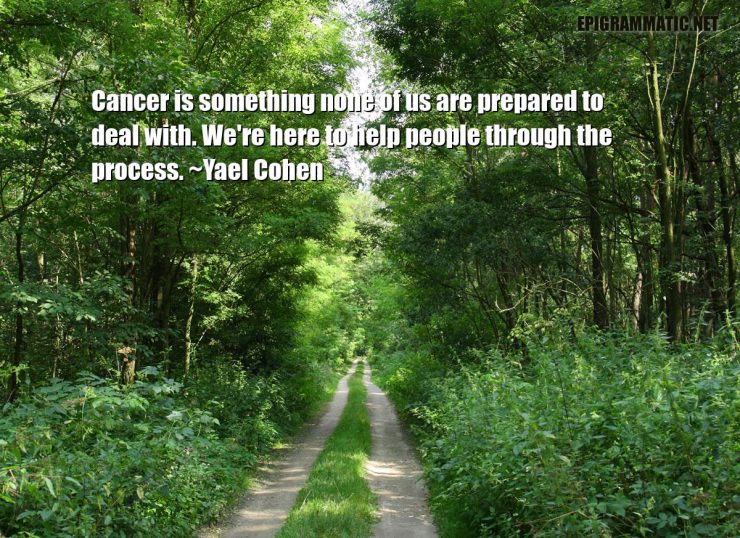Yael Cohen Quotes Yael Cohen Cancer is something none of us are prepared to deal with. We're here to help people through the process. Cancer Deal Help People Process Something None Us