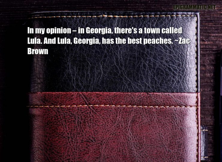 Zac Brown Quotes Zac Brown In my opinion – in Georgia, there's a town called Lula. And Lula, Georgia, has the best peaches. Best Georgia Opinion Peaches Town